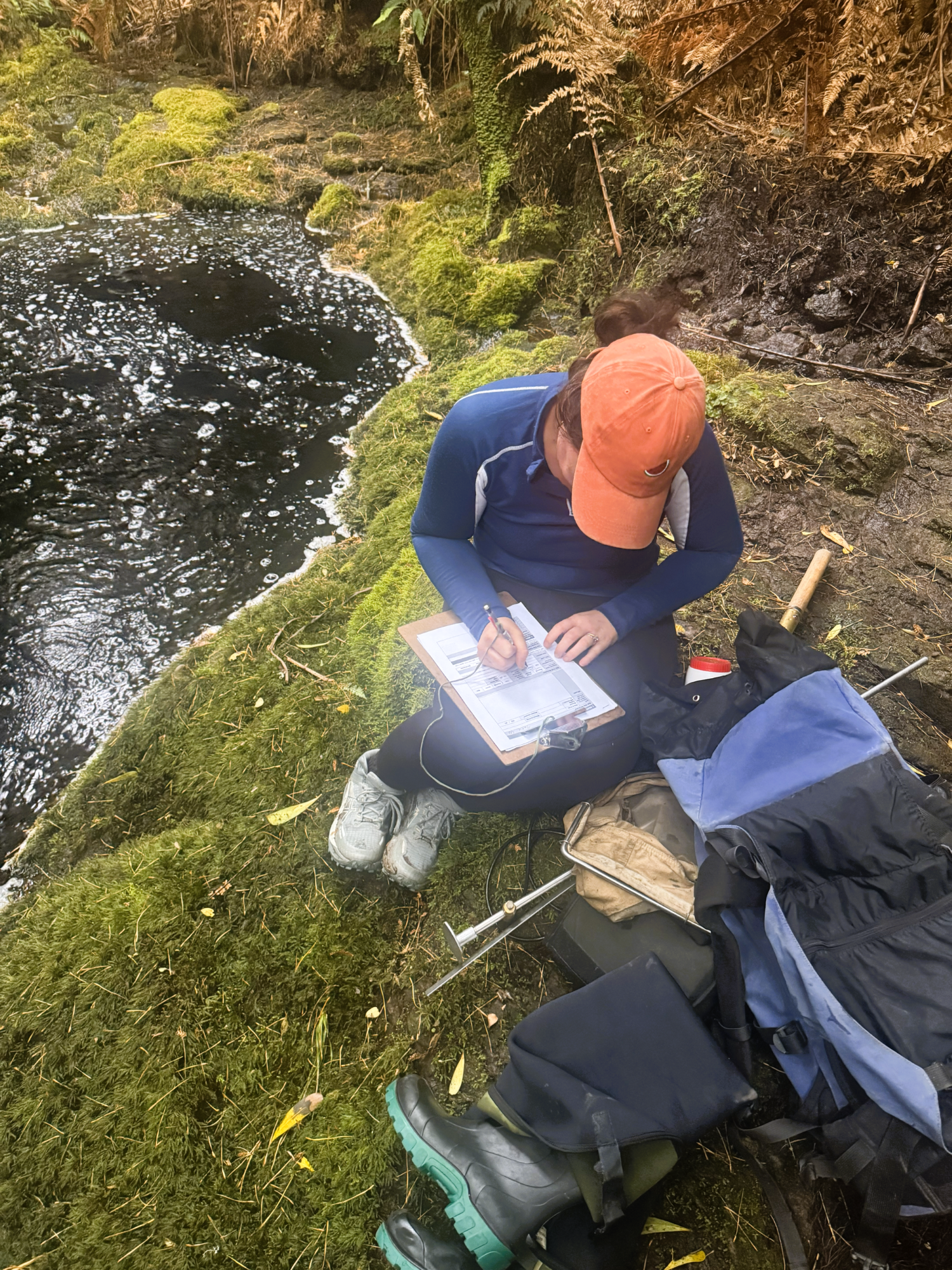 Milly Farquar taking notes on freshwater samples for the Restoration Strategy,